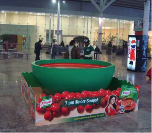 Es difícil pasar por alto este enorme tazón de sopa de Knorr, y el punto de venta de cartón colocado alrededor del tazón le dice todo lo que necesita saber sobre el producto.